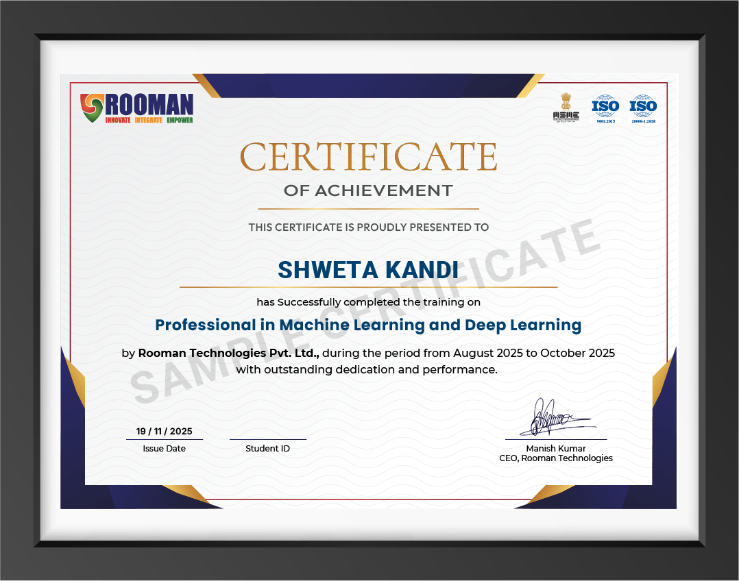 This comprehensive program equips learners with foundational to advanced skills in Machine Learning (ML), Deep Learning (DL), and Time Series Analysis. Designed for data-driven professionals, the course integrates mathematical foundations, real-world ML algorithms, and industry-standard tools like Scikit-learn, XGBoost, TensorFlow, and PyTorch to build robust, production-ready models. Learners also gain hands-on experience with feature engineering, model evaluation, and neural networks to solve real-world AI problems.